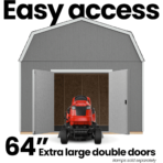 - 64″ wide double doors provide easy access for large equipment, tools, and storage bins.